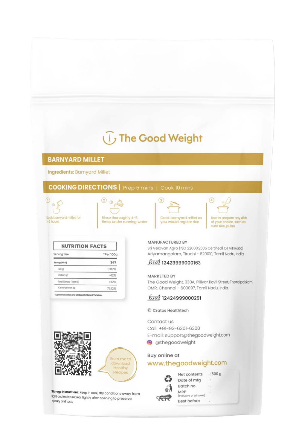 • Maida-Free: We use Barnyard Millet flour and Whole Wheat flour instead of refined flour.